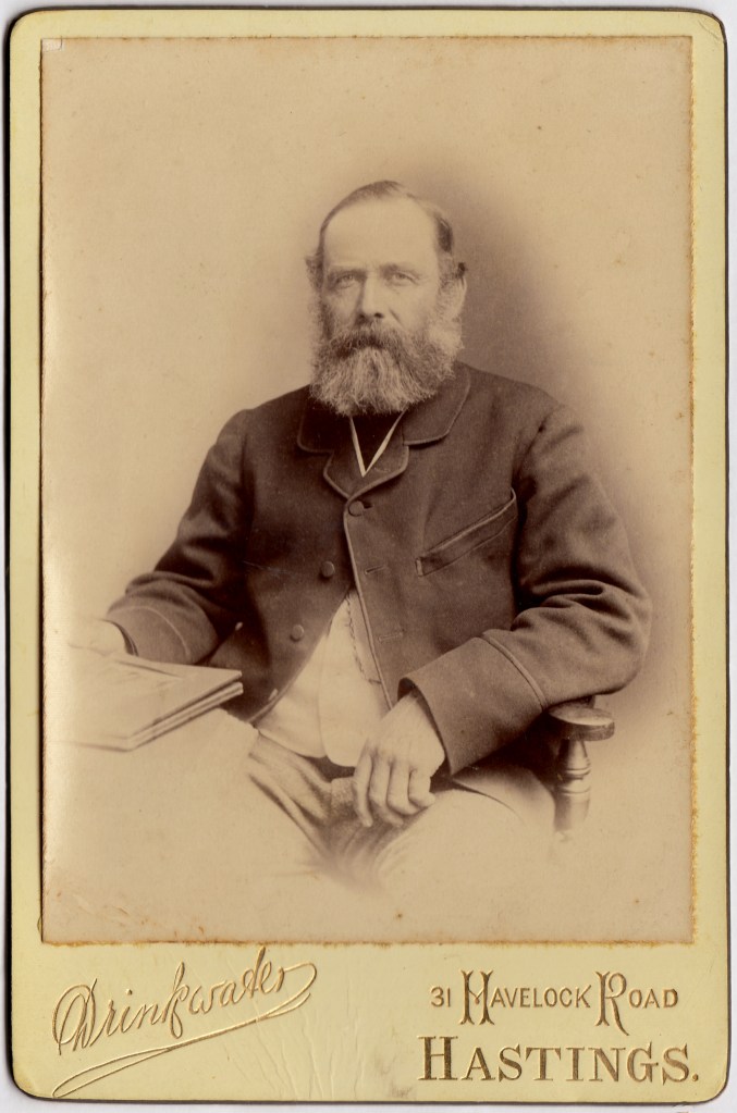 Cabinet portrait of a bearded man by W. E. A. Drinkwater of 31 Havelock Road, Hastings. Negative No. 10455 (c1888). Permanent Chromotype Photograph.