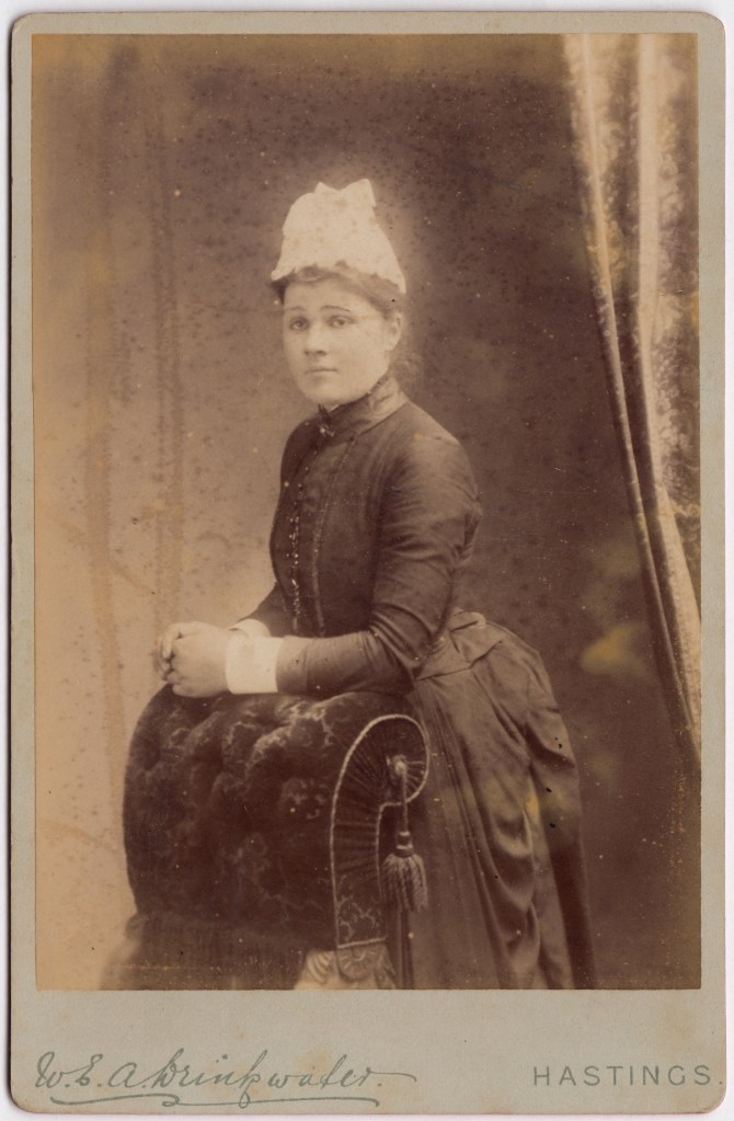 Portrait of a young woman. A cabinet card photograph by W. E. A. Drinkwater of 31 Havelock Road, Hastings (circa 1891) . Negative No.13767. Albumen print.